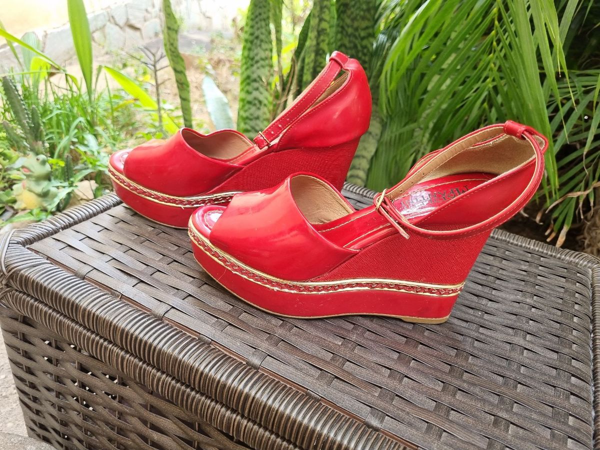 Sandalia clearance plataforma vermelha, Sand lia Plataforma Vermelha Verniz N37 Sand lia Feminina clearance