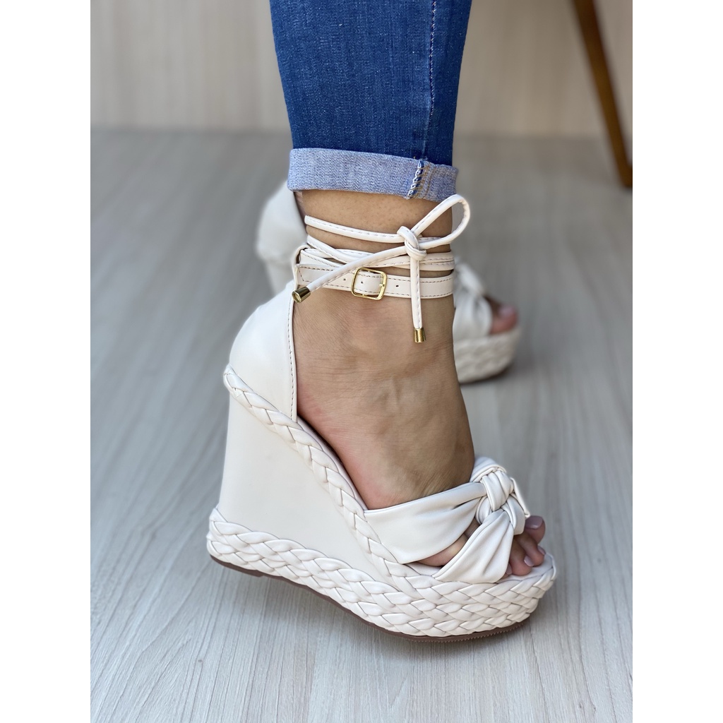 Sand lia Anabela Branco Tran as Salto Alto Shopee Brasil