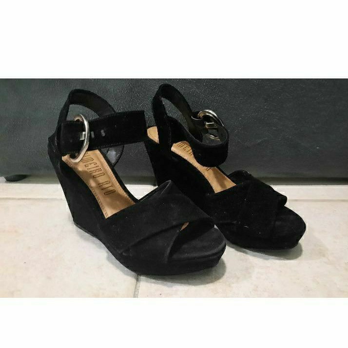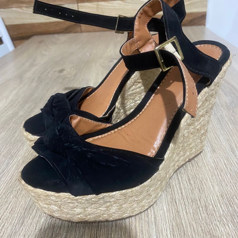 Sandalia clearance anabela camurça, sand lia anabela salto grosso plataforma preta camur a fivela conforto clearance