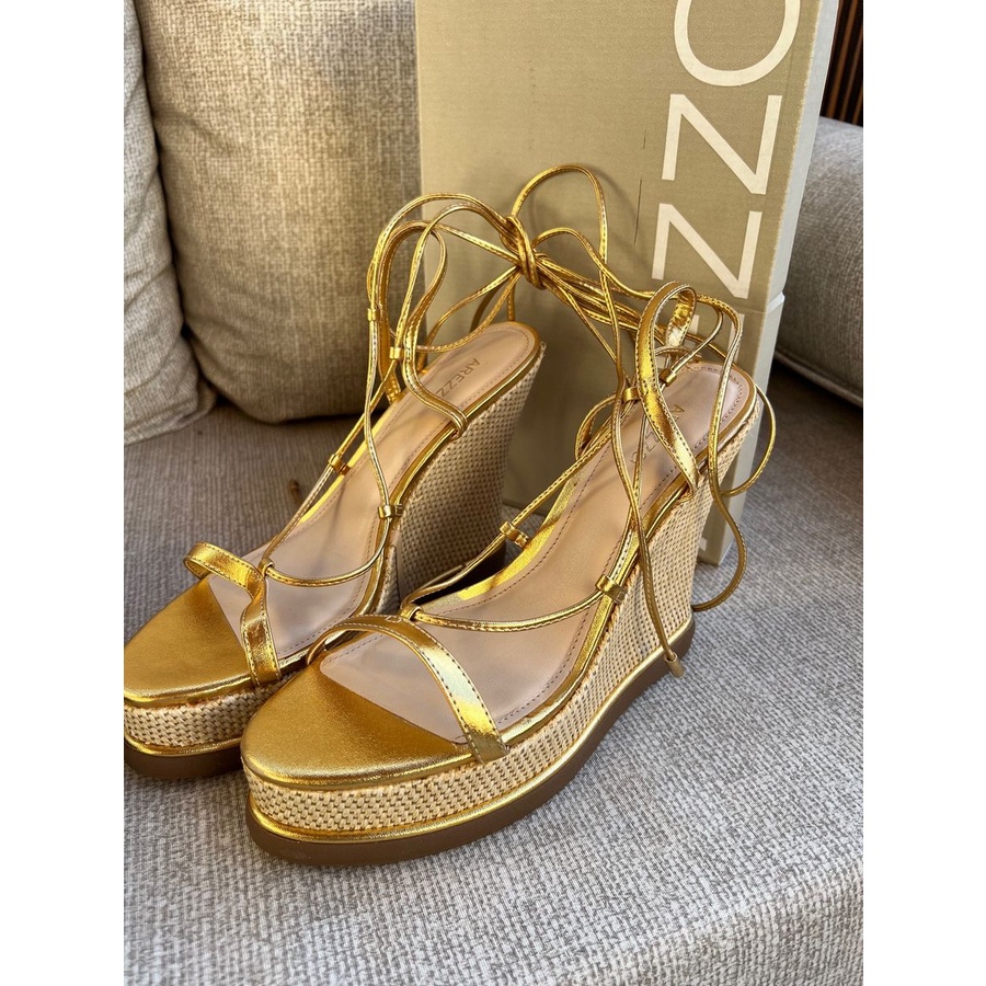 Sand lia Anabela Arezzo Dourada Plataforma Tiras Amarra o