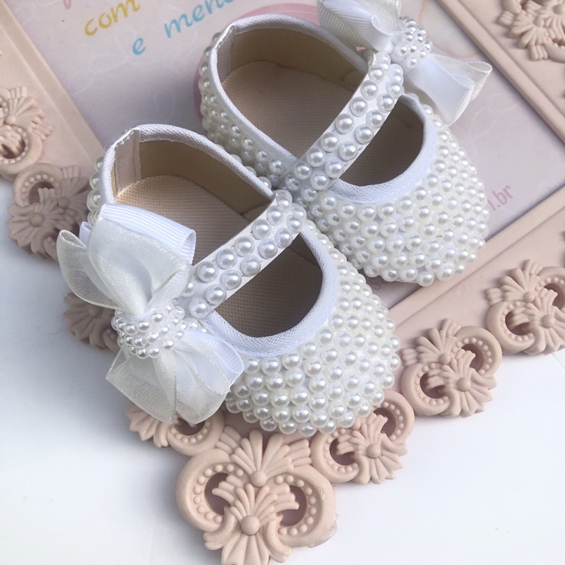 Sapatinho Menina Customizado Batizado P rola Rec m Nascido