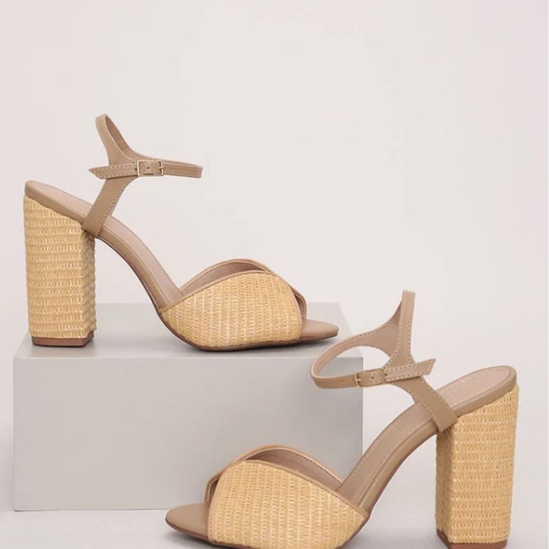 Sandalia oneself salto clearance grosso, Sand lia Feminina Oneself de Palha com Salto Grosso Alto Bege Sand lia Feminina Oneself C A Usado 95162480 enjoei clearance