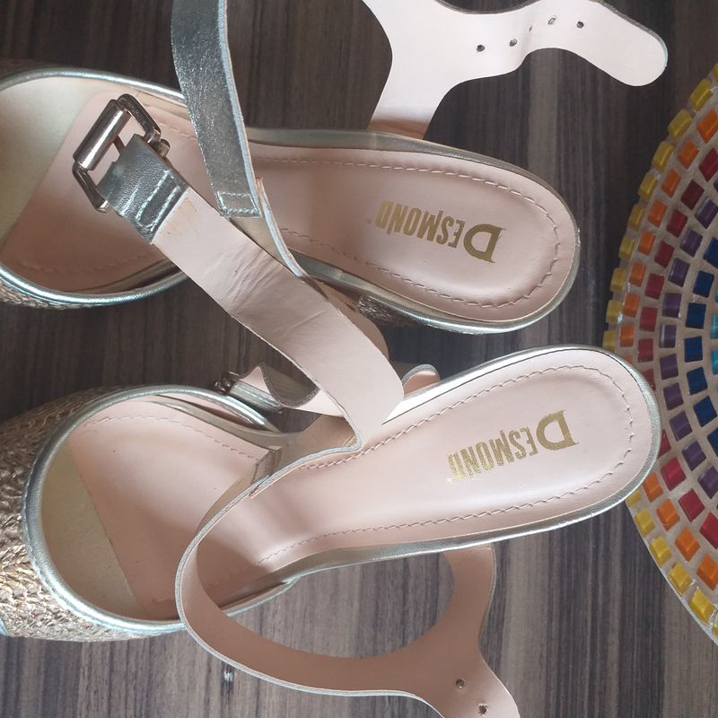 Sand lia Desmond Dourada prateada Salto Grosso Sand lia Feminina Desmond Usado 93303357 enjoei