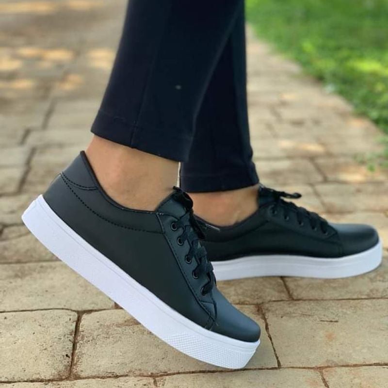 T nis Feminino Preto Sapato Casual Confort vel Sola Branca com Cadar o S fram Cal ados T nis Feminino Nunca Usado 87036174 enjoei