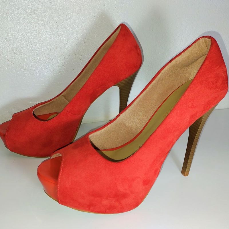 Sapato vermelho meia clearance pata, Scarpin Aberto Meia Pata Pedrarias Sapato Show 1931637 clearance