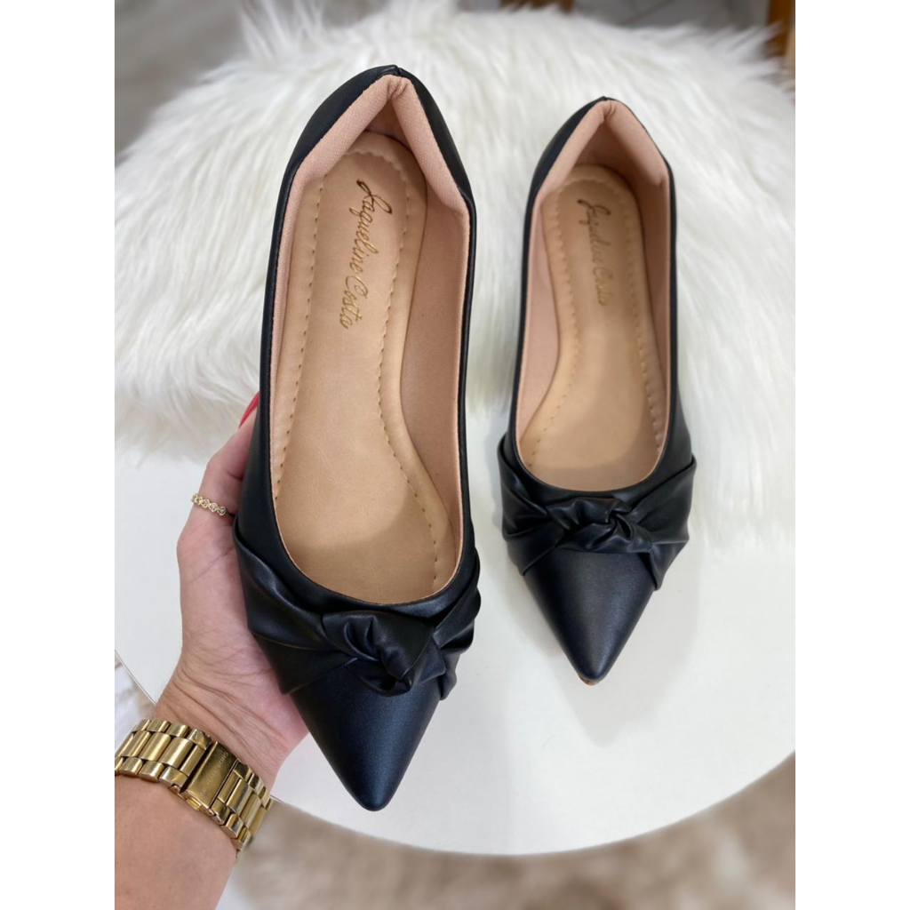 Sapatilha Feminina Bico Fino Rasteira Preta Com Detalhes em