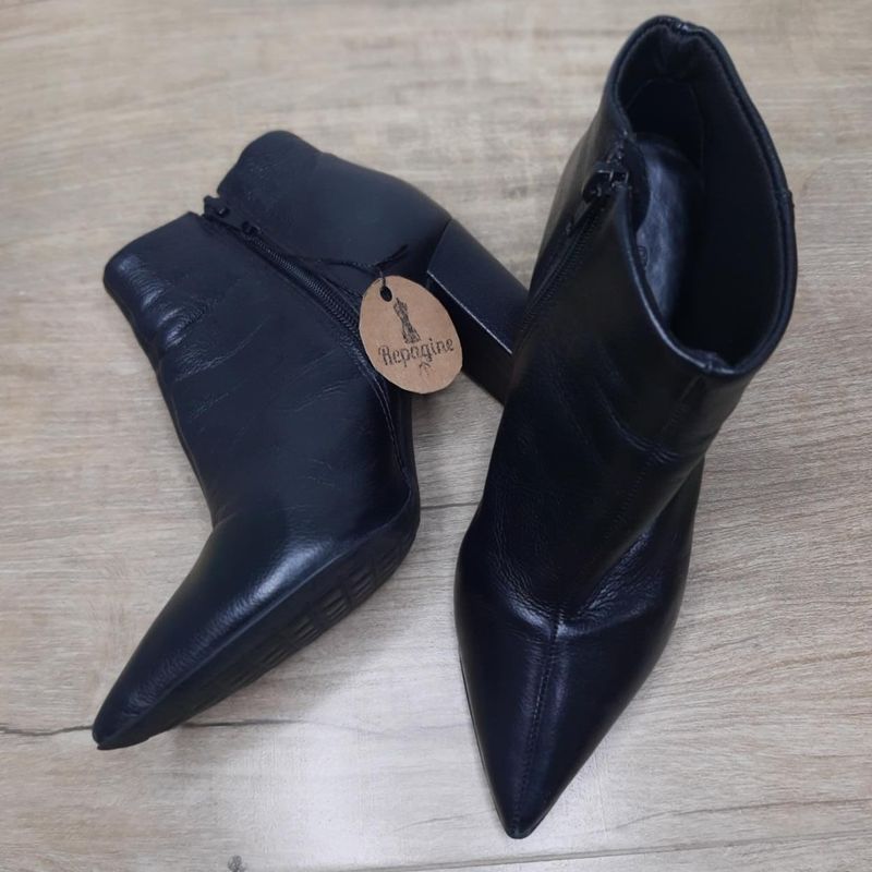 Bota Preta Cano Curto com Tela Salto Grosso Brech 198112 Bota Feminina Mundial Cal ados Usado 79081921 enjoei