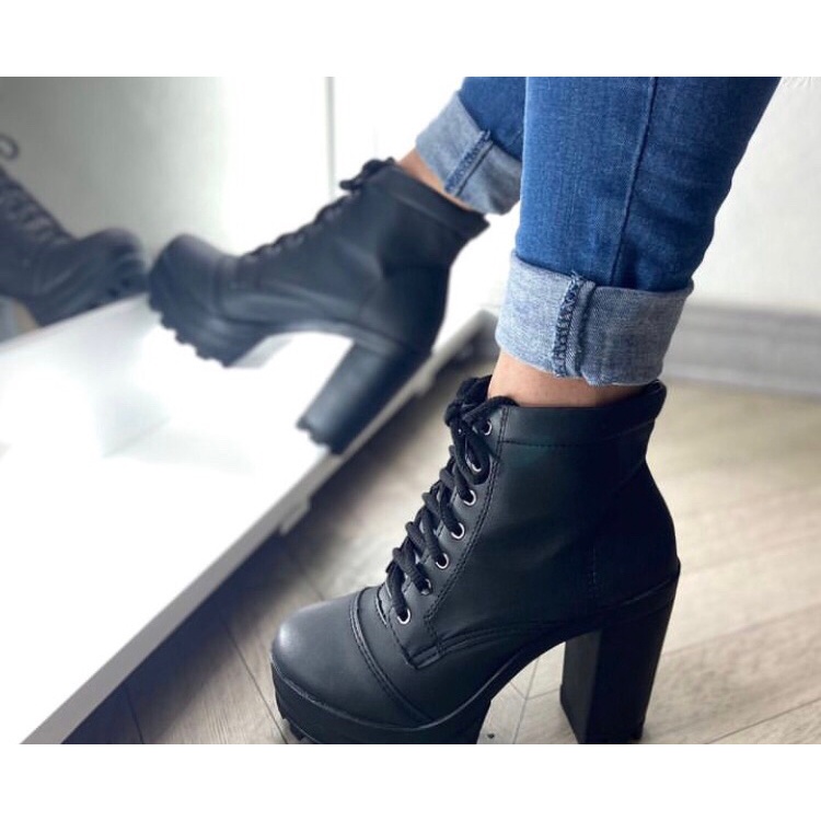 Coturno feminino de clearance salto alto, Coturno Feminino Preto Salto Alto Cano Curto Confort Oferta clearance