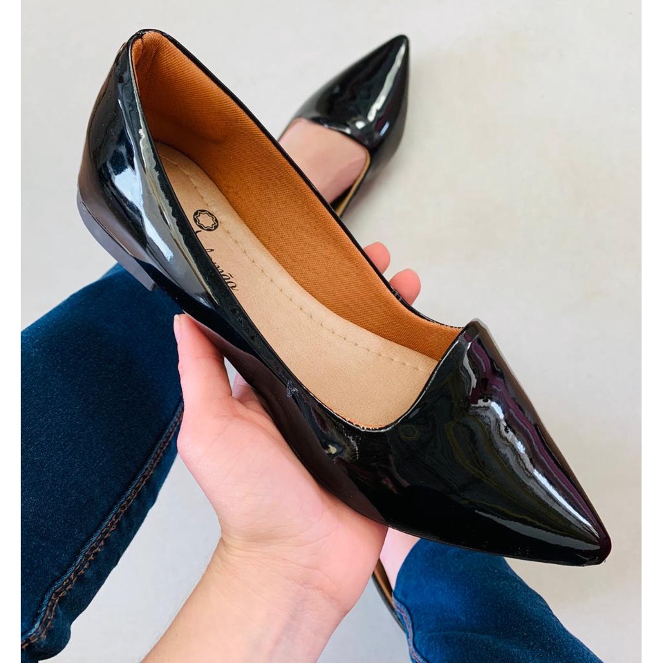Sapatilha Preta ou nude Verniz Lisa Feminina Moda casual Moda feminina confortavel promo o modinha blogueirinha atacado