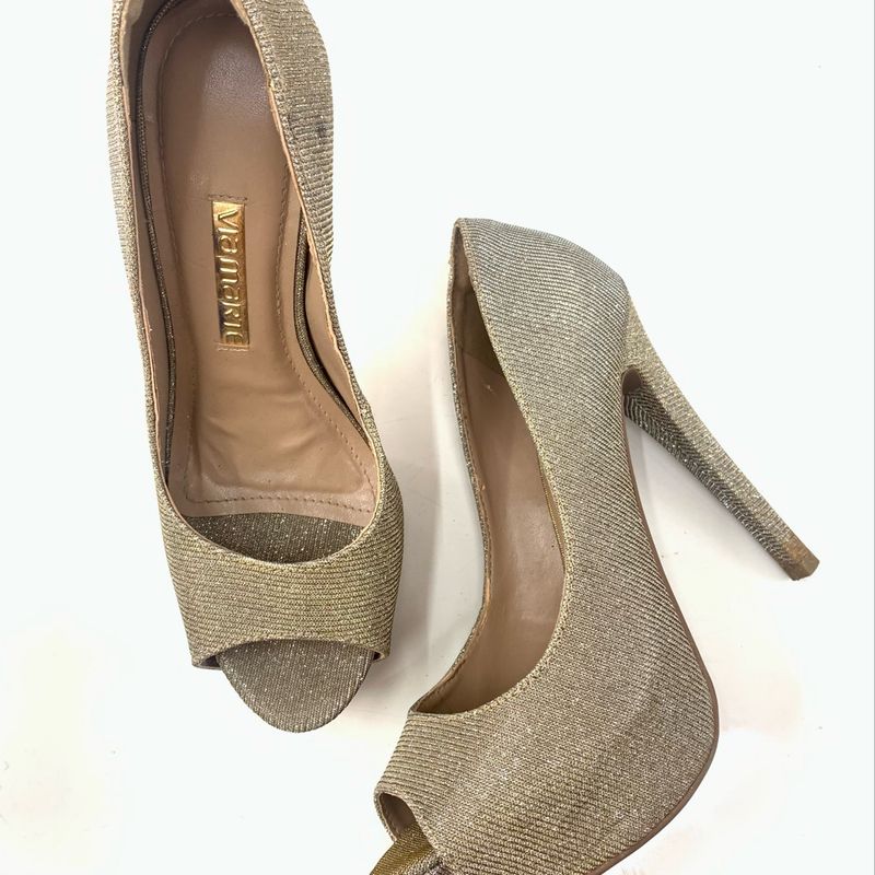 Peep Toe Via Marte Todo em Lurex Brilhante Na Medida Certa