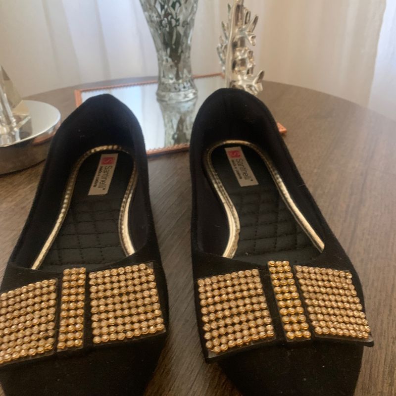 Sapatilha Bico Fino 35 Santinelli Preta La o com Brilho
