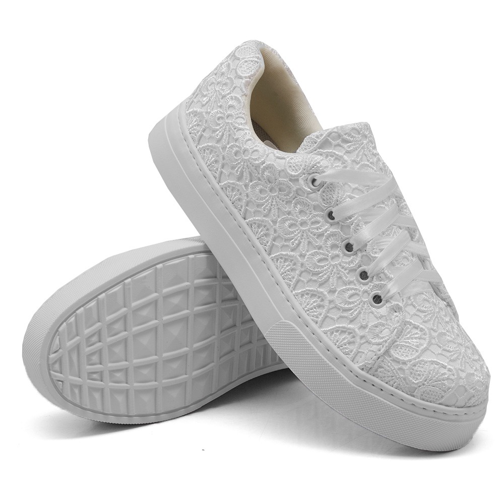 T nis Feminino Branco Noiva Festa Renda Guipir Branca Casamento