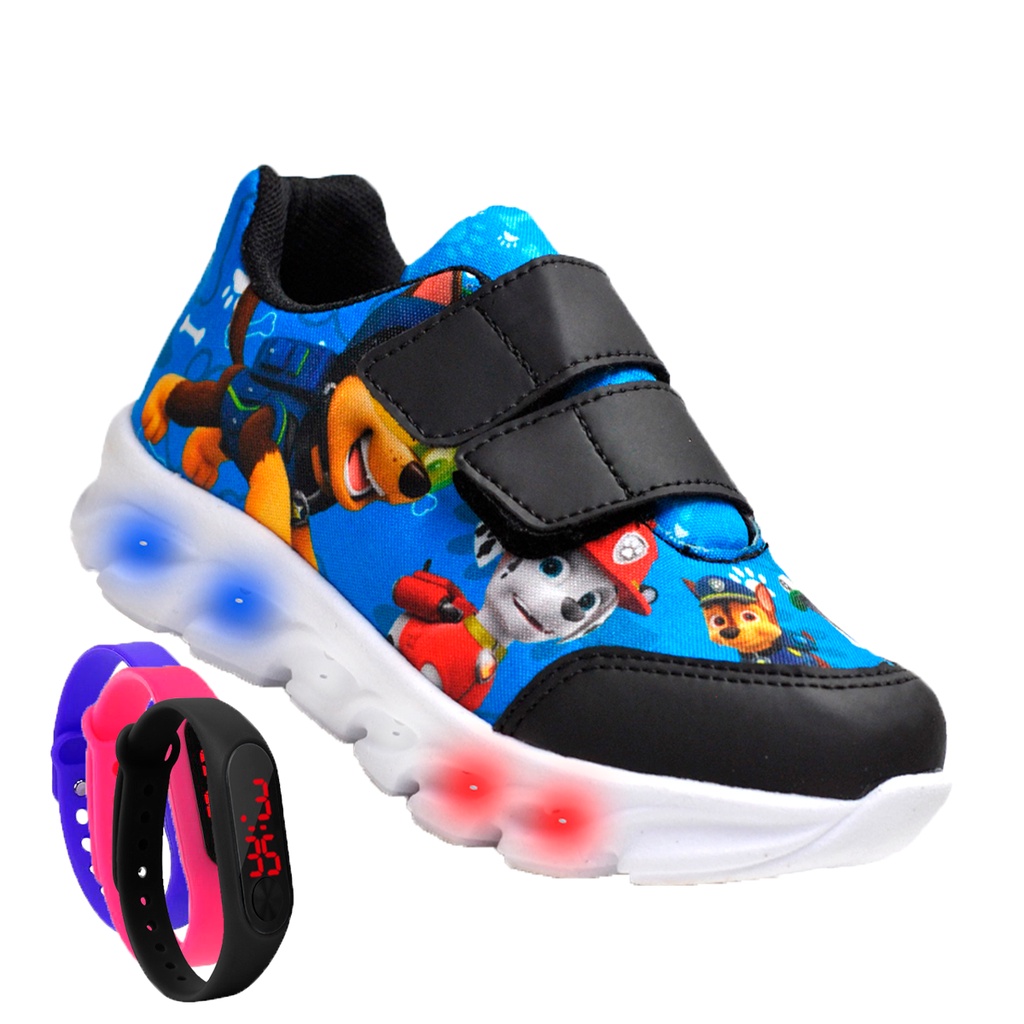 Tenis De Led Masculino De Velcro Patrulha Canina Luzinha Luz