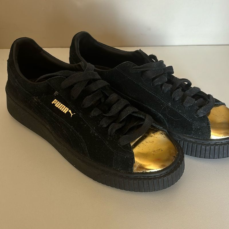 Tenis Puma de Veludo Preto com Solado Marrom Claro T nis Feminino Puma Nunca Usado 51616112 enjoei