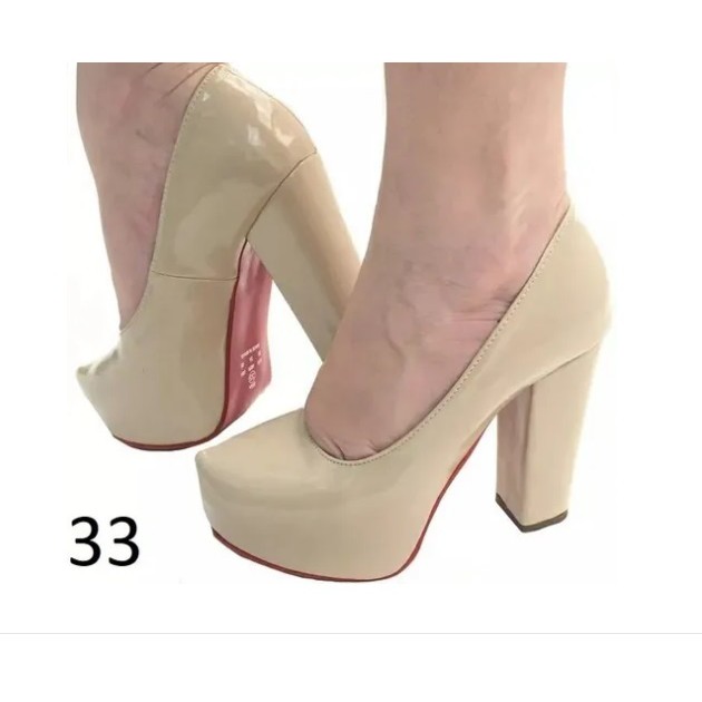 Scarpin Meia Pata Nude Bege verniz Salto Alto Grosso promo o envio imediato Numero 33