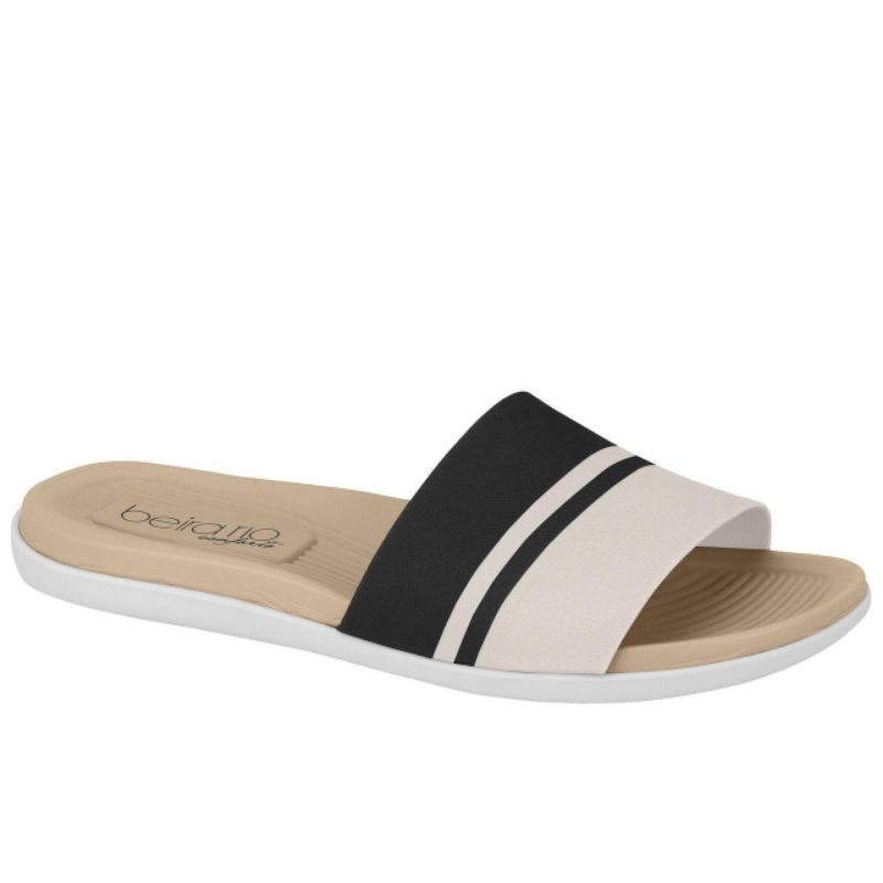 Rasteirinha Beira Rio feminino slide listrado 8360.230 preto branco