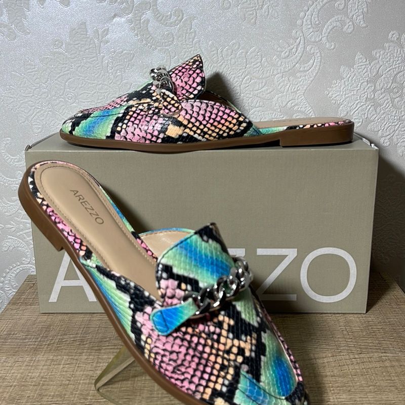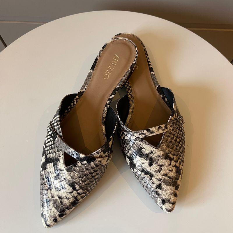 Mule clearance arezzo cobra, Mule Preta Couro Snake Bico Fino Flat clearance