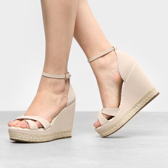 Sandalia clearance anabela griffe, Sand lia Anabela Griffe N Feminina Bege Zattini clearance