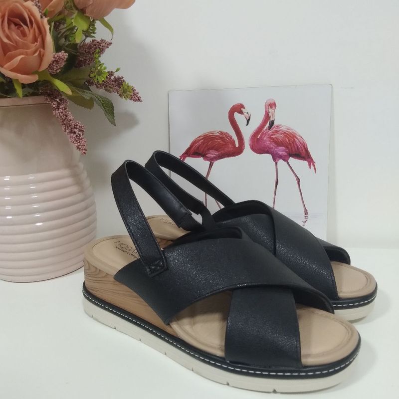 Salto clearance anabela marrom, Sand lia Preta com Salto Anabela Marrom Madeira Sand lia clearance