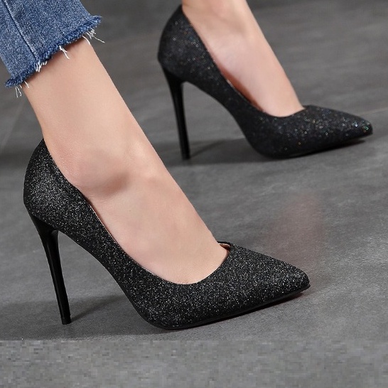 Sapato clearance com brilho, Sapato Salto Alto Preto Glitter Festa Scarpin Tecido com Brilho clearance