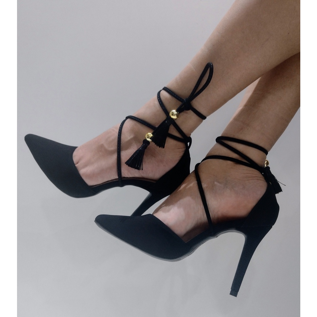 Sand lia Feminina Salto Alto amarrar na perna Shopee Brasil