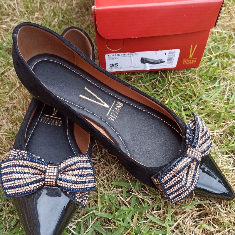 Sapatilha clearance vizzano 2018, Sapatilha Preta Bico Fino com La o e Detalhes com Pedrinhas clearance