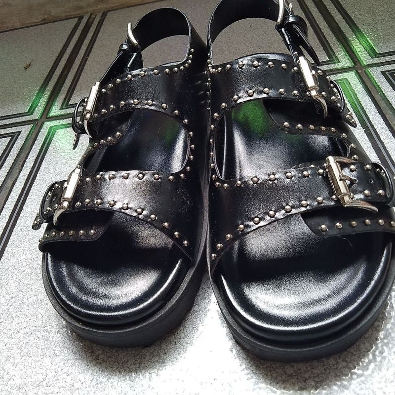 Sand lia Papete Preta Couro Tratorada Satinato Nova Sand lia Feminina Satinato Renner Nunca Usado 95468135 enjoei