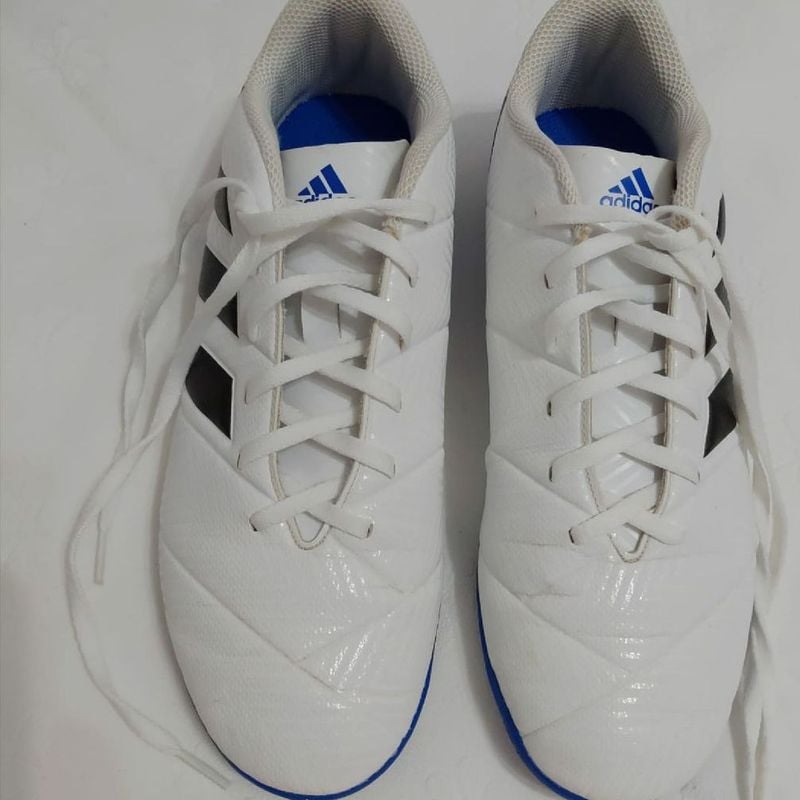 Chuteira Society Adidas Nemeziz Messi Tan 18 4 Tf Branca Azul e Preto Sapato Masculino Adidas Usado 57843298 enjoei