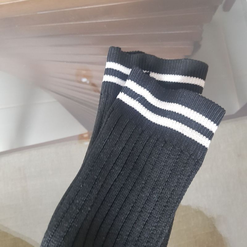 Bota Meia Vizzano Preta Longa Listras em Cima Usada Poucas Vezes