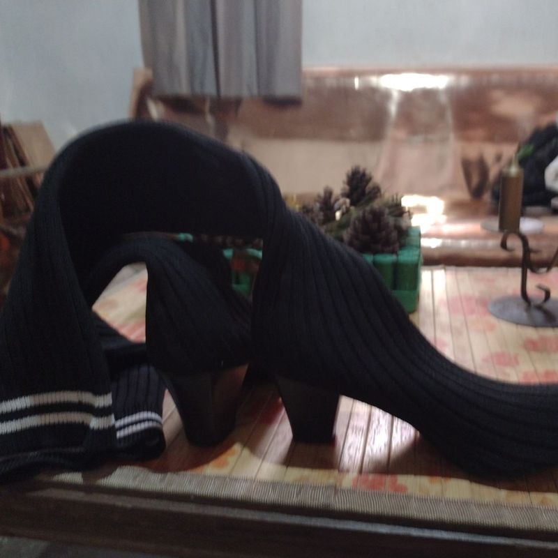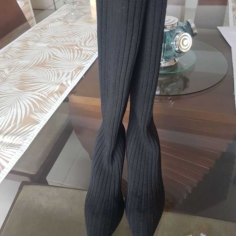 Bota Meia Vizzano preta longa listras em Cima usada Poucas Vezes confort vel Bota Feminina Vizzano Usado 96482442 enjoei