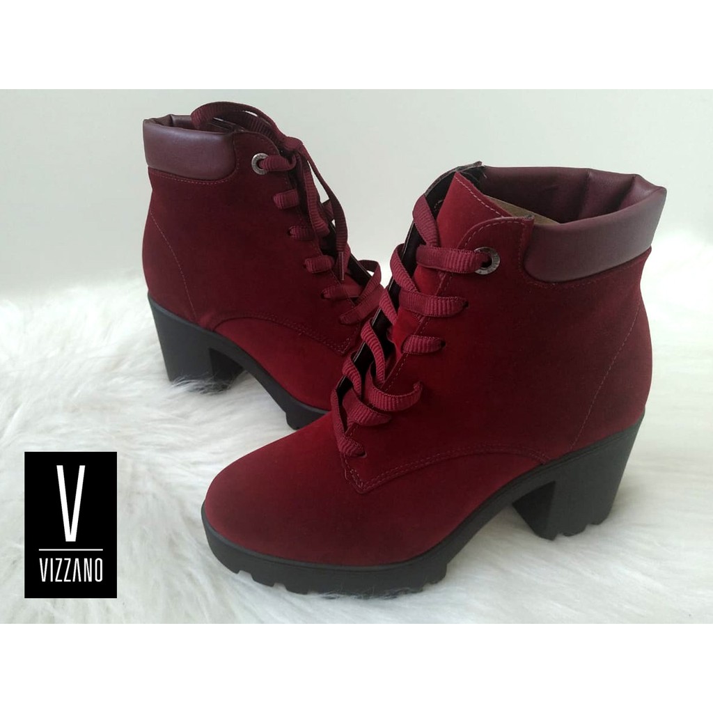 Bota vizzano cano clearance curto vinho, Bota Coturno Tratorada Feminina Original Vizzano Camur a Vinho clearance