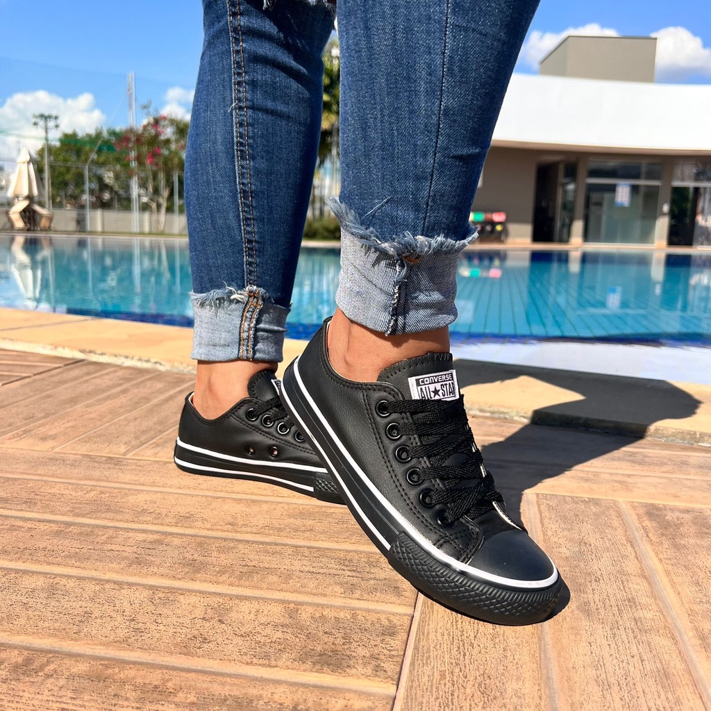 T nis Converse All Star Chuck Taylor Couro Unissex Preto Branco