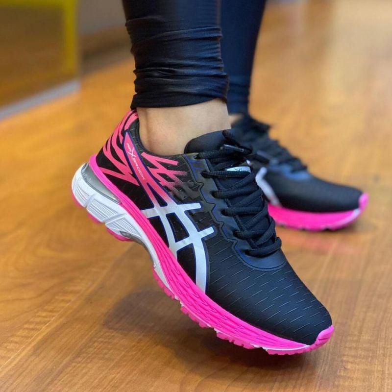 Tenis clearance academia asics, T nis de Academia Feminino T nis Esportivo Preto e Rosa Moda clearance