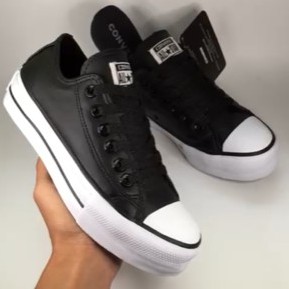 Tenis all star plataforma couro preto e couro branco Escorrega o