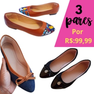KIT 3 PARES DE SAPATILHAS FEMININA BICO FINO CONFORT VEL TAMANHOS