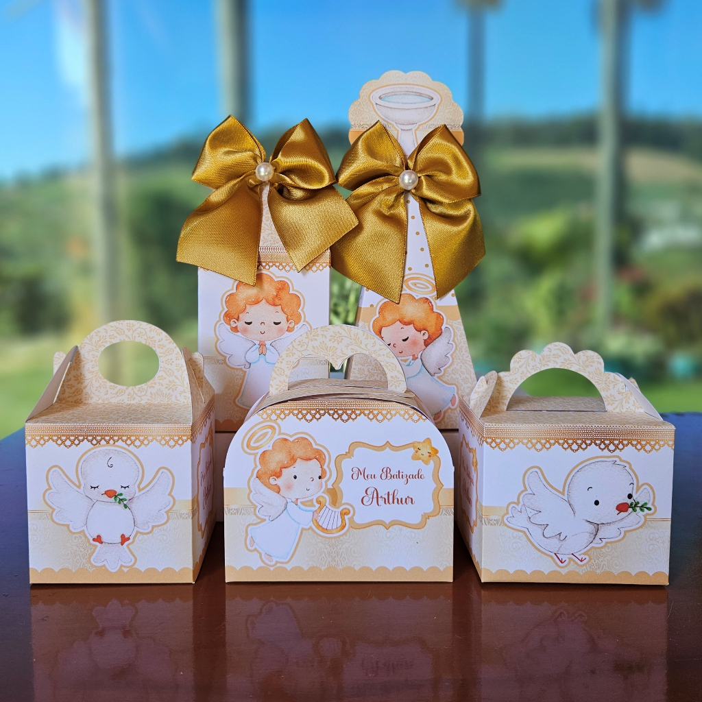 Kit Festa Personalizados Batizado Dourado Menino Anjinho