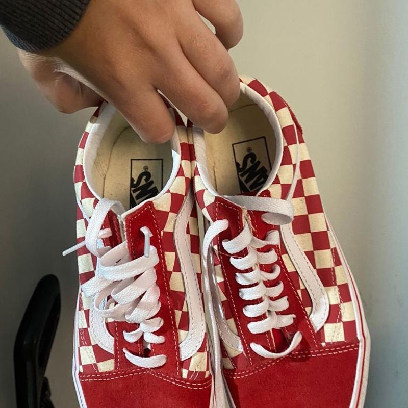 VANS Old Skool Red Checkered Canvas Suede Lace Up Skate Shoes Mens Sz 10 eBay
