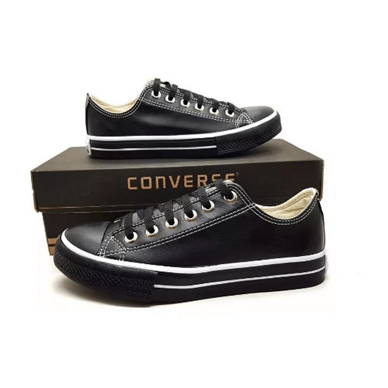 T nis Converse All Star Chuck Taylor Couro Preto Branco