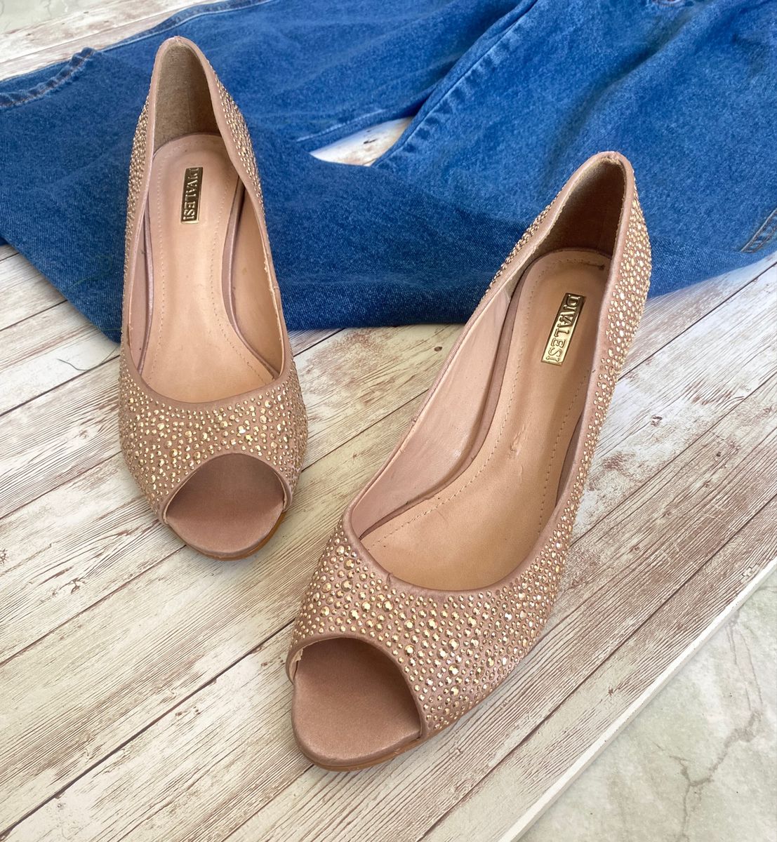 Sapato para Casamento Festa Ou Formatura Nude com Pedraria Salto