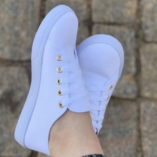 T nis Feminino Casual Confort vel B sico Branco Sapat nis Branco