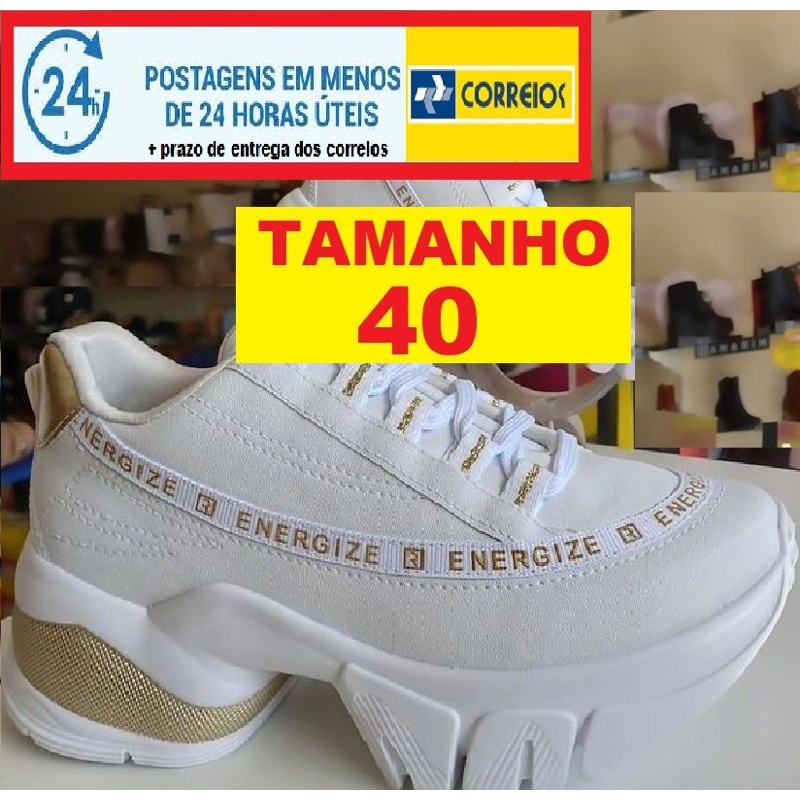 Tenis branco tamanho clearance 40, t nis feminino tamanho 40 Ramarim dourado ouro blogueira original clearance