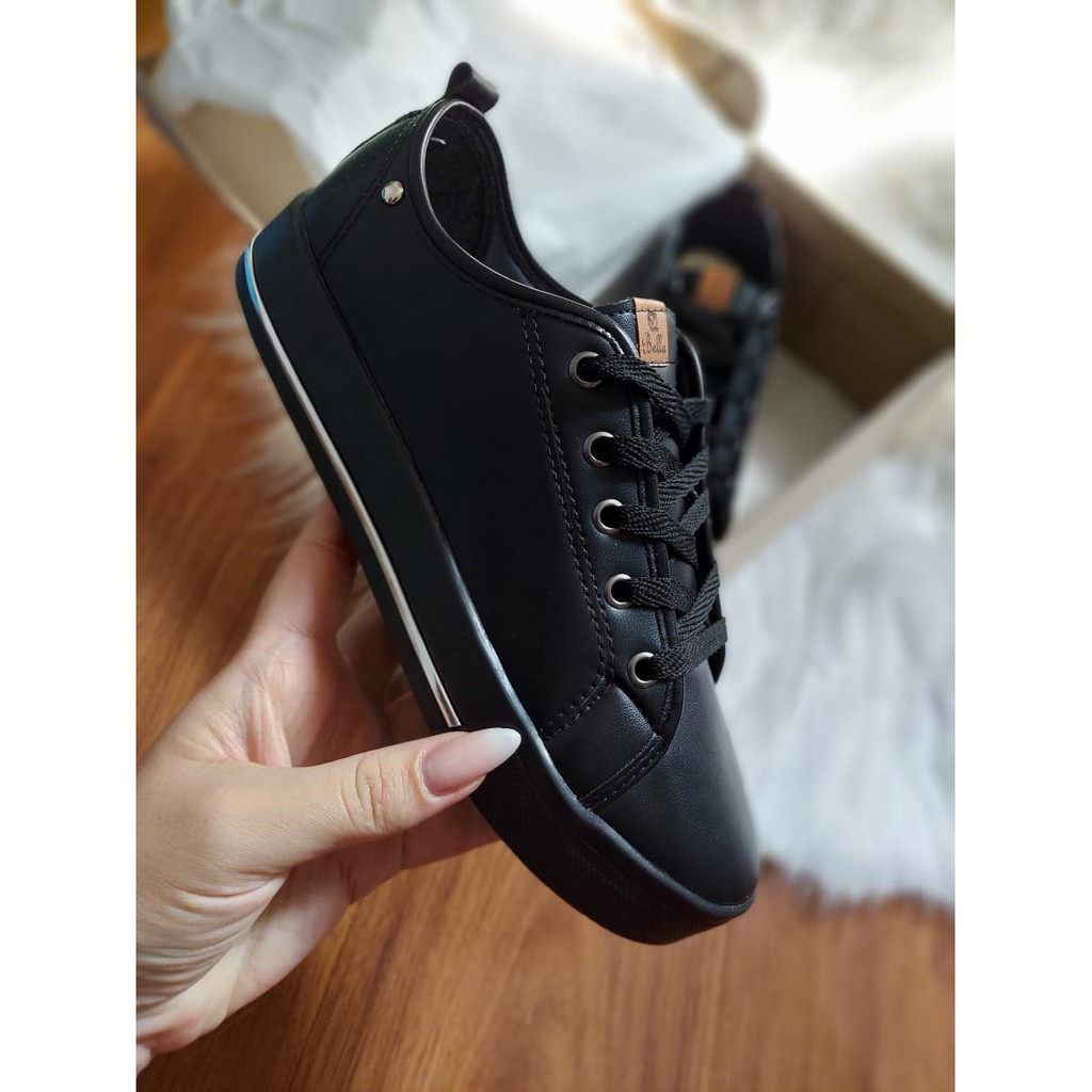 Tenis Feminino Preto casual sapatenis macio e confortavel luxuoso para o dia a dia basico leve