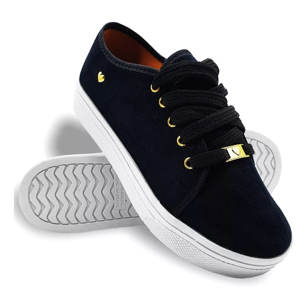 tenis feminino preto casual sapatenis bonito barato envio rapido uso trabalho uso passeio