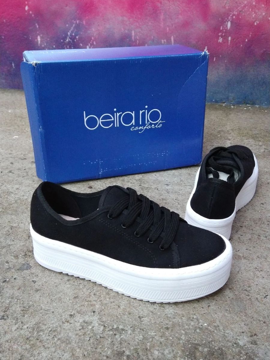 T nis Beira Rio Plataforma Preto Branco Sneaker T nis Feminino Beira Rio Nunca Usado 60837084 enjoei