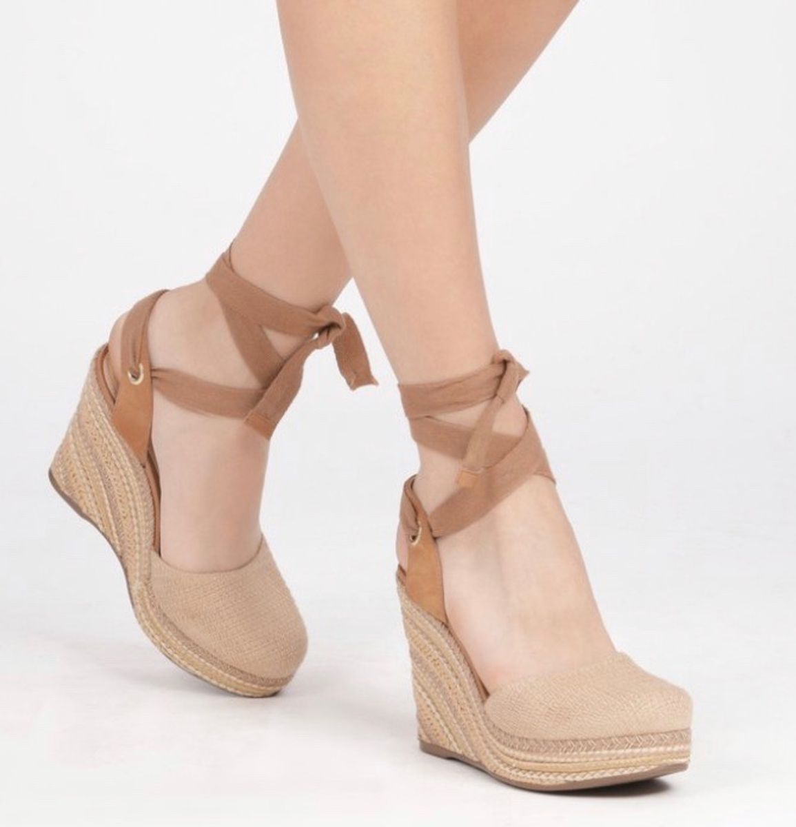 Espadrille Natural Bordada Salto Alto Amarra o Arezzo Sapatos Cia
