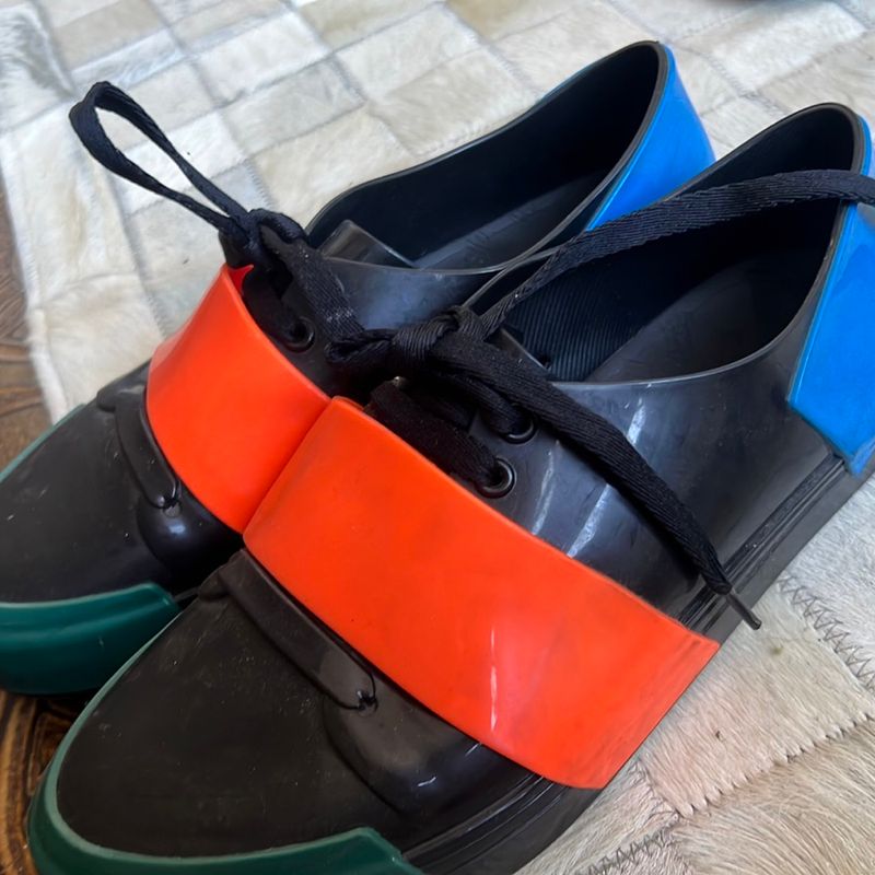 Tenis Melissa Crew Low Preto laranja azul T nis Masculino Melissa Usado 88516882 enjoei