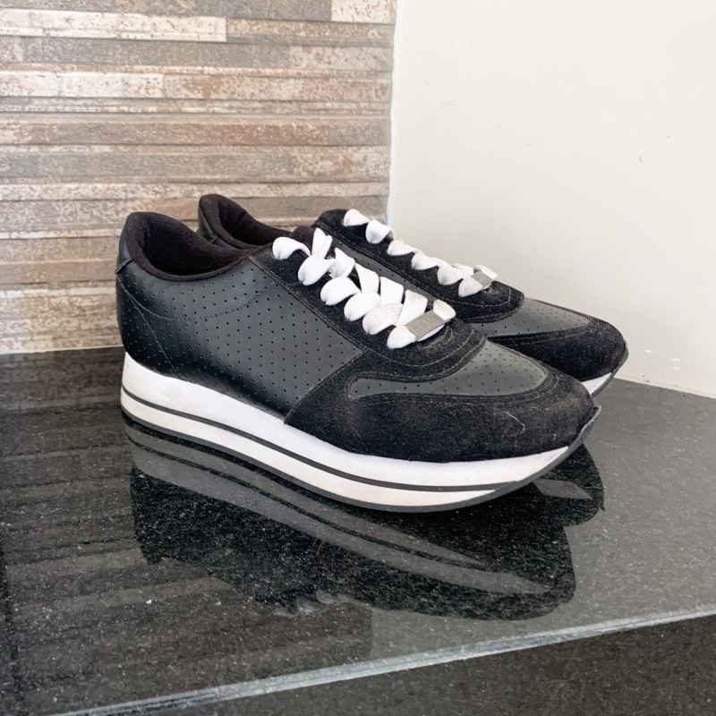 T nis Moleca Preto e Branco Plataforma Casual Confort vel T nis Feminino Moleca Usado 58767687 enjoei