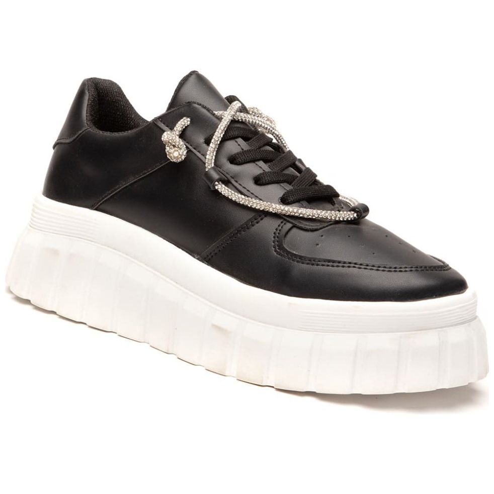 Tenis con Agujeta y Plataforma con Aplicaci n Negro Boullevard