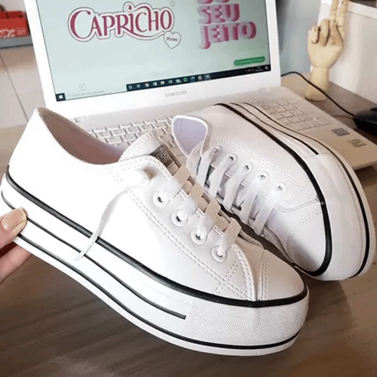 Tenis capricho preto clearance e branco
