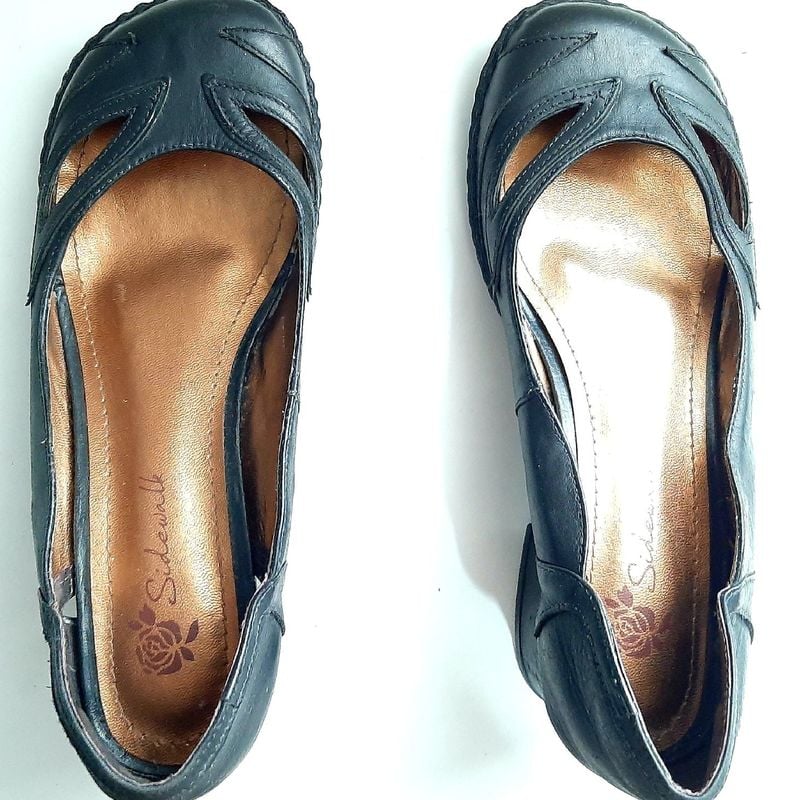 Sapato de Couro Preto Estilo Boneca Sidewalk Sapato Feminino